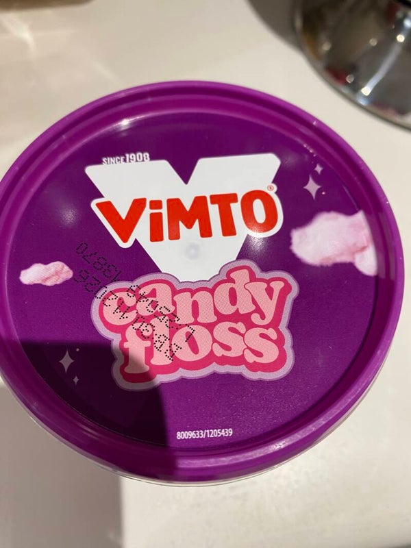 Ingredients: sugar, Vimto flavouring (including natural extracts of fruits, herbs and spices), natural colour (Anthocyanins), acid (citric acid)