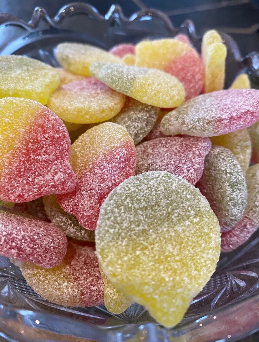Ingredients: Sugar, Glucose syrup, water, WHEAT starch, modified maize starch, Acids (lactic acid malic acid, citric acid) modified potato starch, Acidity Regulators and Vegetable Concentrates (spirulina, salflower, black carrot). Flavouring, ccolour (curcumin).